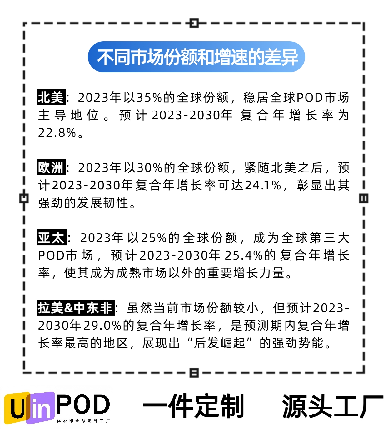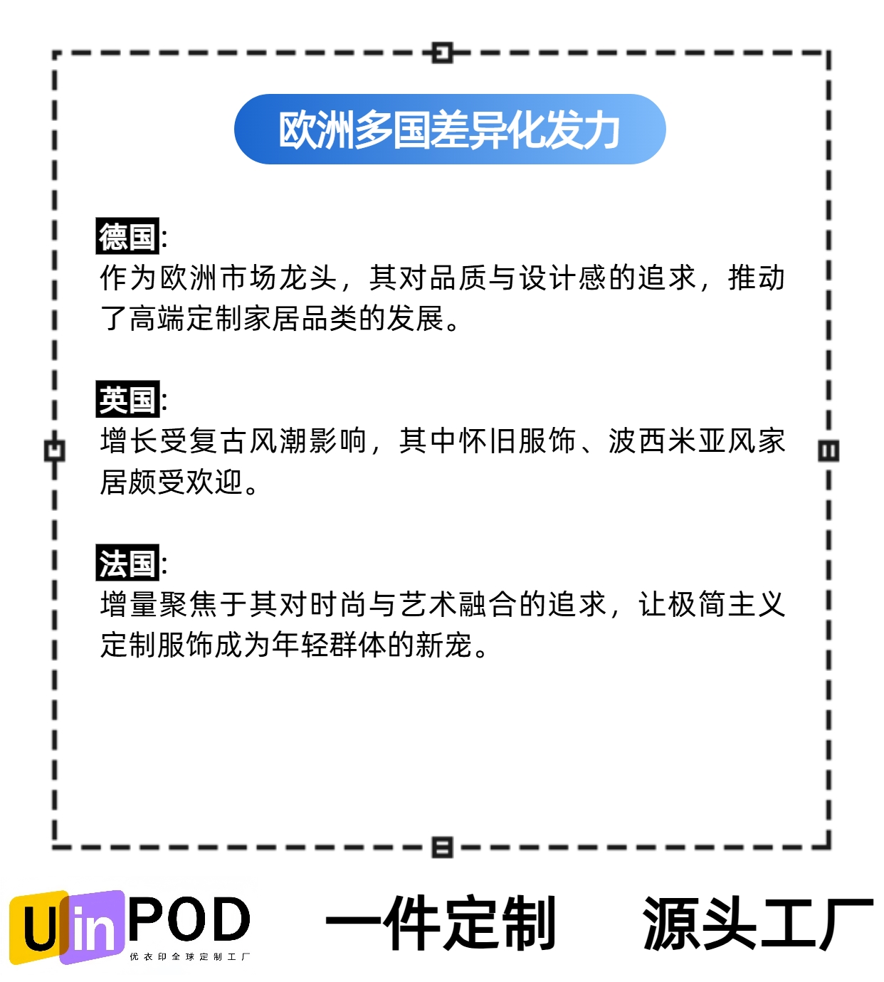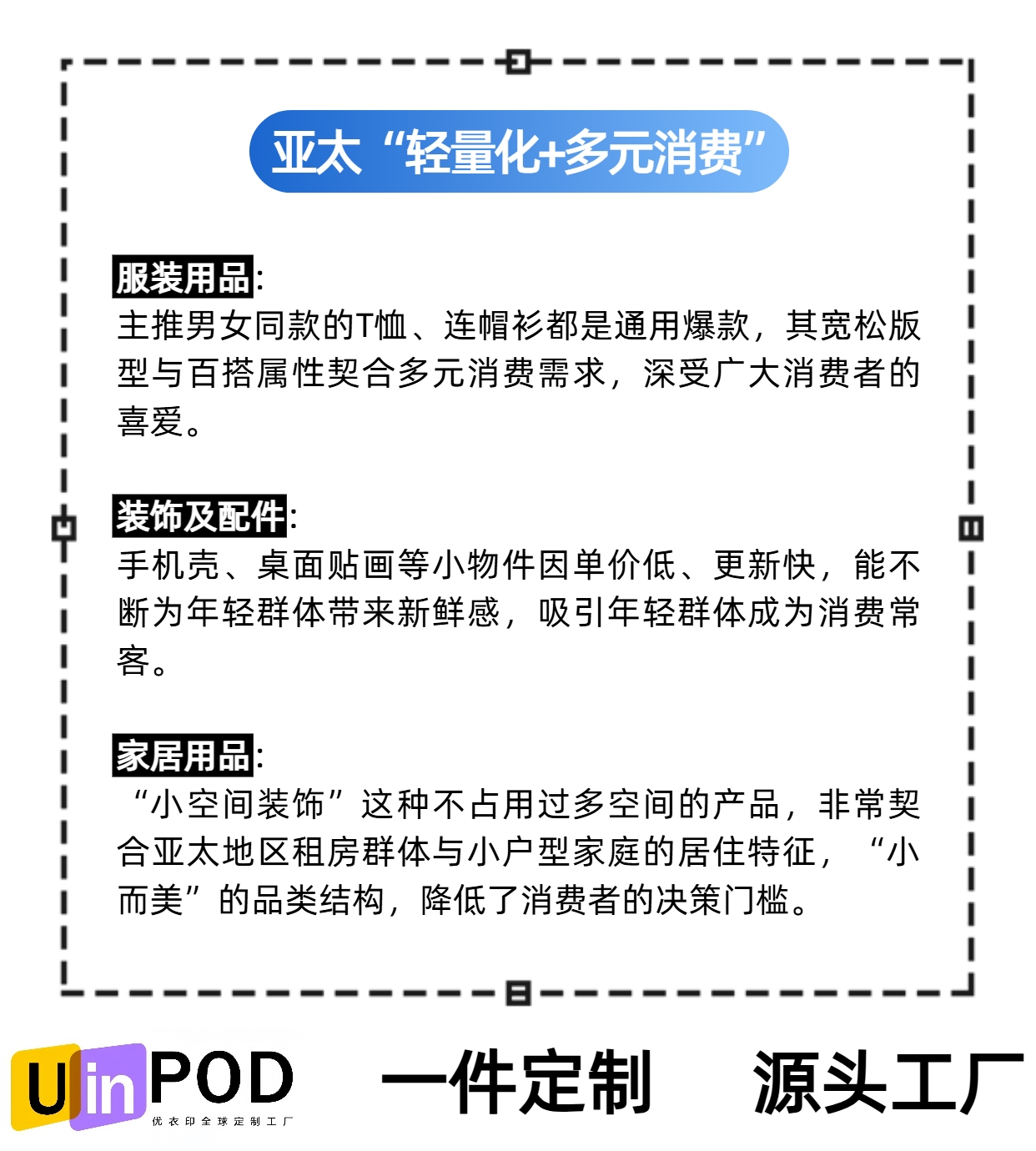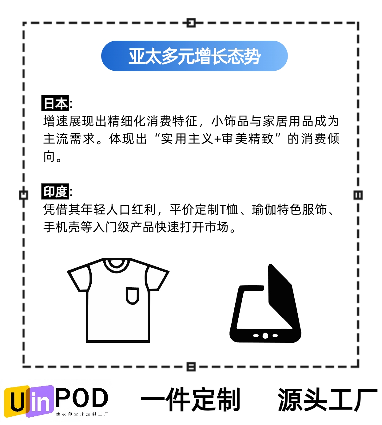 UinPOD优衣印全球定制公司,已在美国,西班牙、德国、泰国、菲律宾、马来西亚、日本、墨西哥等多个国家本地布局印花工厂,可定制产品有:T恤、背心、卫衣、帽子、帆布袋、UV打印、铁皮画、毛毯、时钟、地垫、潮袜、沙滩巾、铝皮画等,支持一件定制一件代发,确保产品品质和48小时交货速度,为卖家提供高品质POD柔性定制服务。