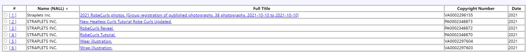 女性常用热烫的方式卷发,但长期如此会对头发造成损伤。然而,2020年,随着TikTok上 #robecurls 这一流行趋势的兴起,使这一传统做法开始发生变革。拥有律师背景的发明家艾米丽·肯尼森 (Emily Kenison) 在尝试了市场上所有无热卷发方法和工具后,发现它们不仅效果不明显,卷度难以持久。因此,她决定自己研发一款既能有效卷发又不伤害头发的工具。经过不断的测试和设计改进,RobeCurls® The Original Heatless Curling Headband™ 最终问世,并在2021年成功上市。这款无热卷发带不仅荣获了七项产品创新大奖,还开创了美发创新的全新领域。在本次案件中,原告的主要维权对象是这款风靡全球的无热卷发带,维权的核心在于版权问题。涉案的版权内容广泛,涵盖了产品图、教学视频以及模特图等多个方面。