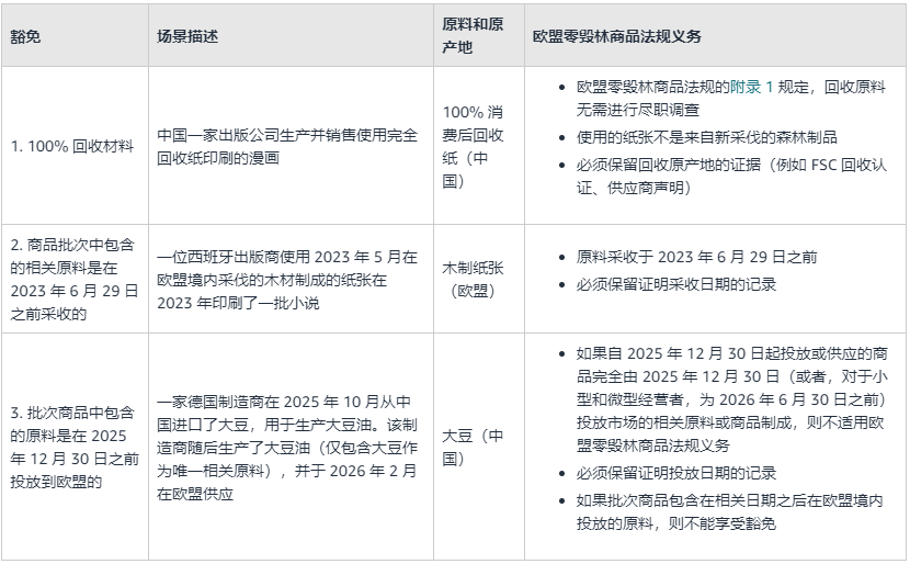 当在亚马逊发票计划中销售的所有商品符合以下任何条件时,您的商品可能免于提交欧盟零毁林商品法规范围内商品的尽职调查声明参考编号和验证编号: