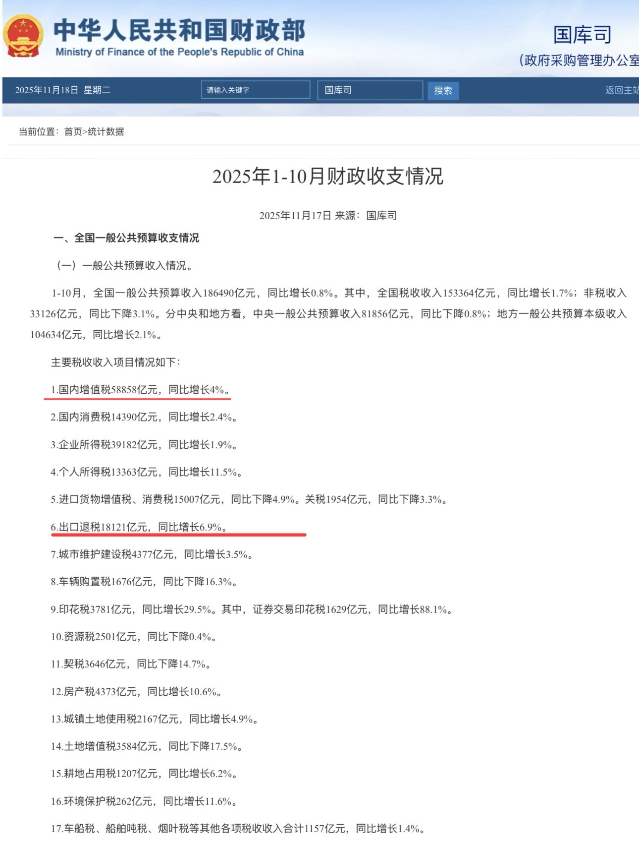 从财政数据看,国家通过税收支持外贸的决心明确。但需要关注两个信号: