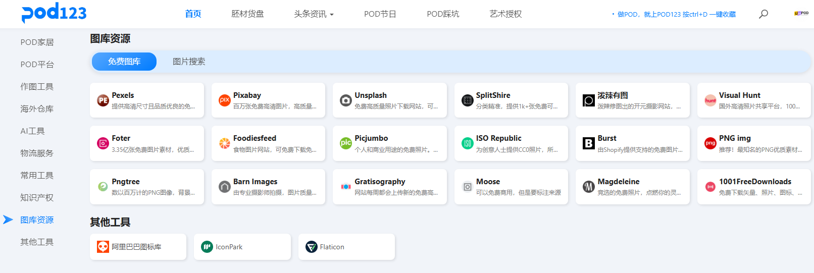 其次,网站推荐了十几款免费图库资源,卖家可以从这些平台上获取图案灵感,结合当下爆火元素,设计出自己的原创图案。