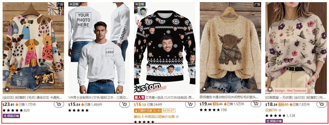 对于欧美的消费者来说,毛衣正是销售旺季,POD定制的模式更能吸引消费者的目光。