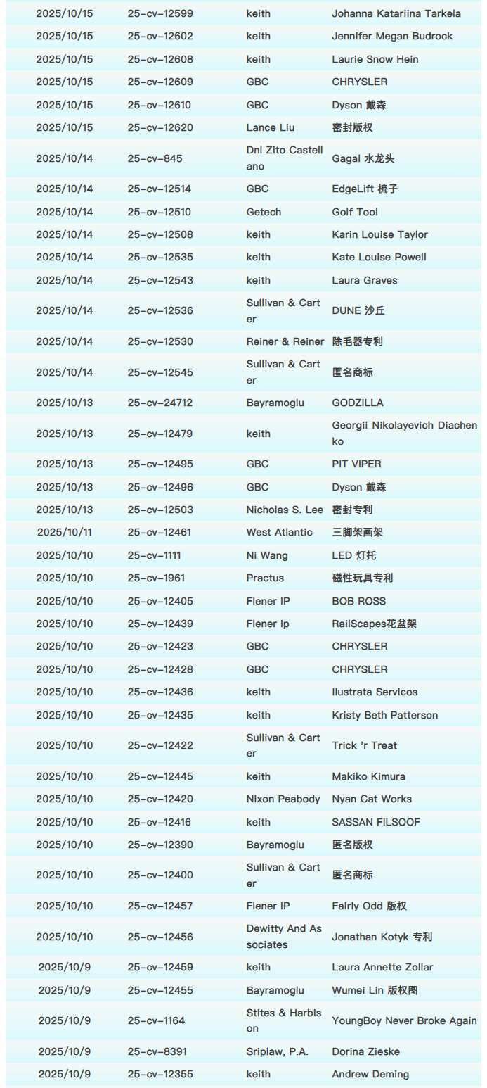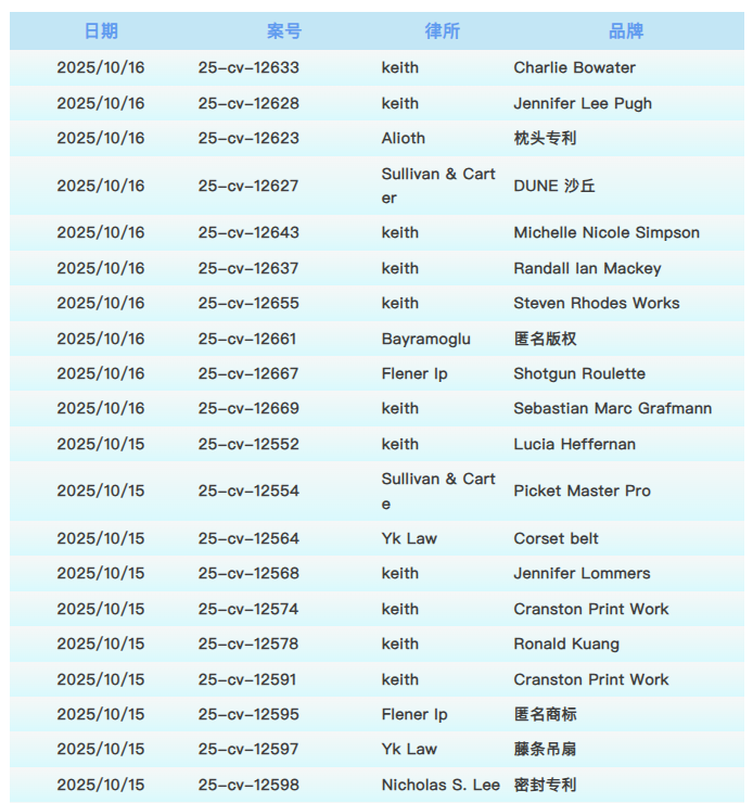 每日TRO案件预警【10.13-10.17】