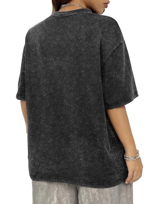 女士复古水洗落肩短袖T恤