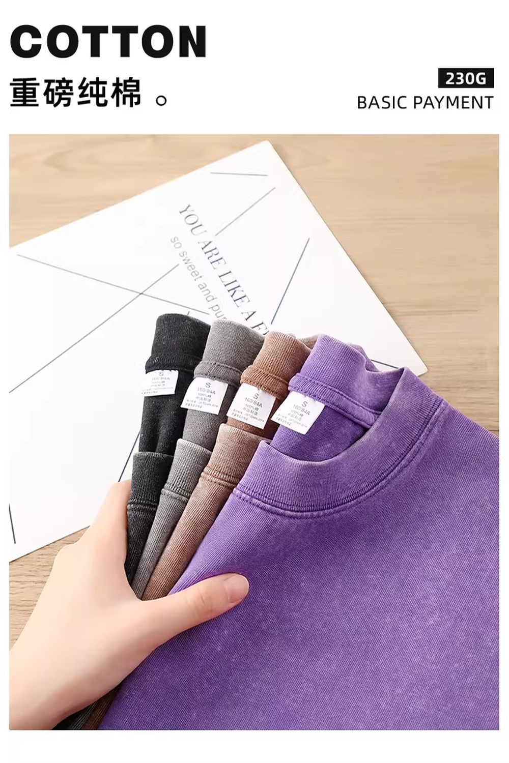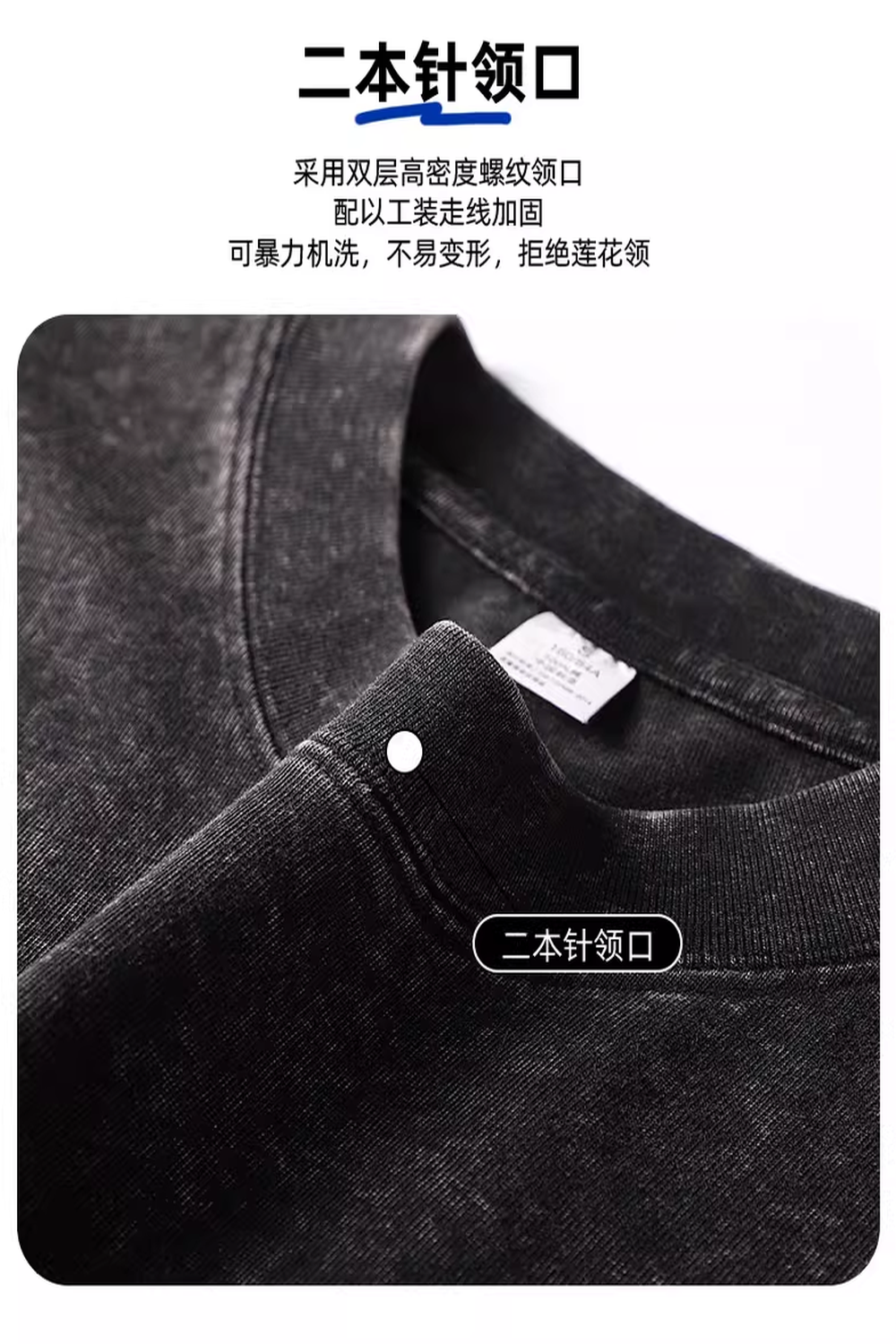 商品名称:230克复古水洗落肩短袖T恤