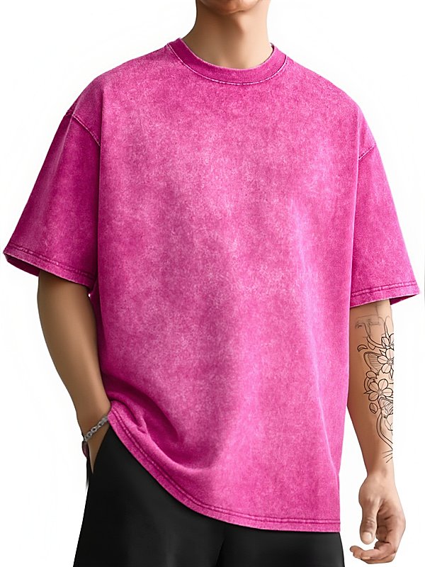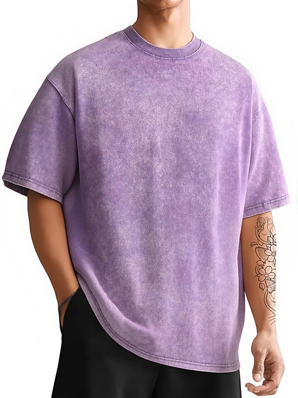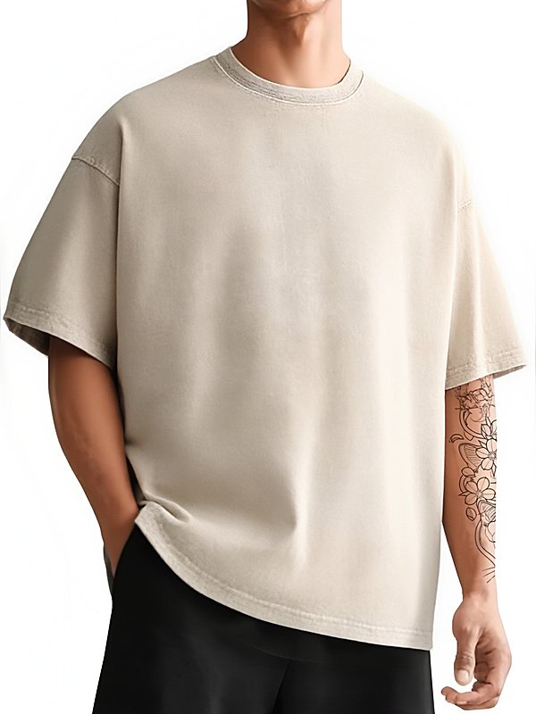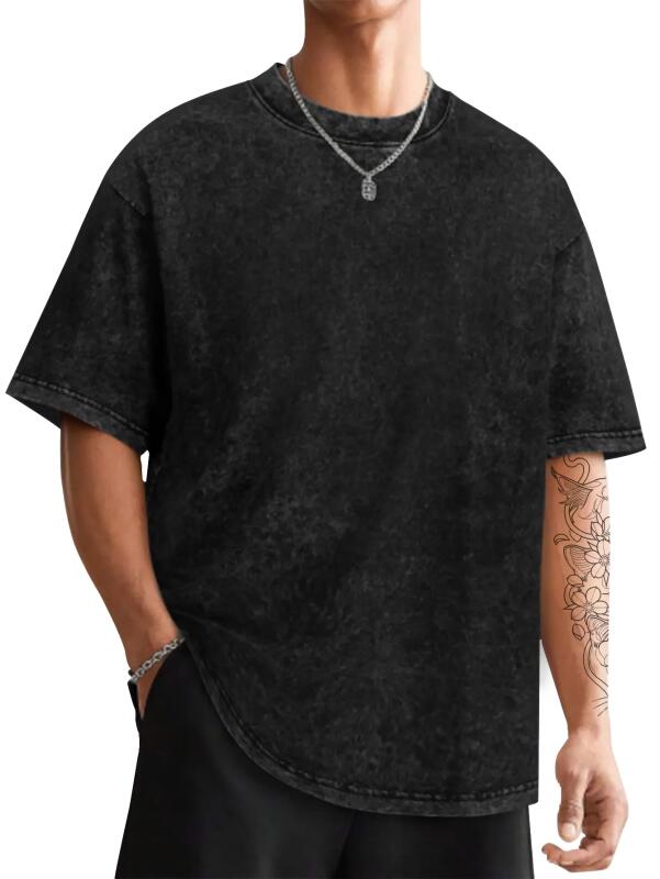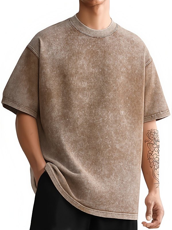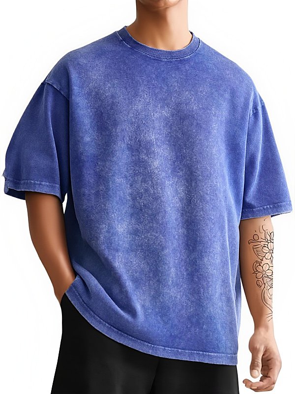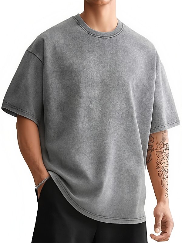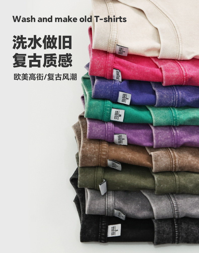 男士复古水洗落肩短袖T恤