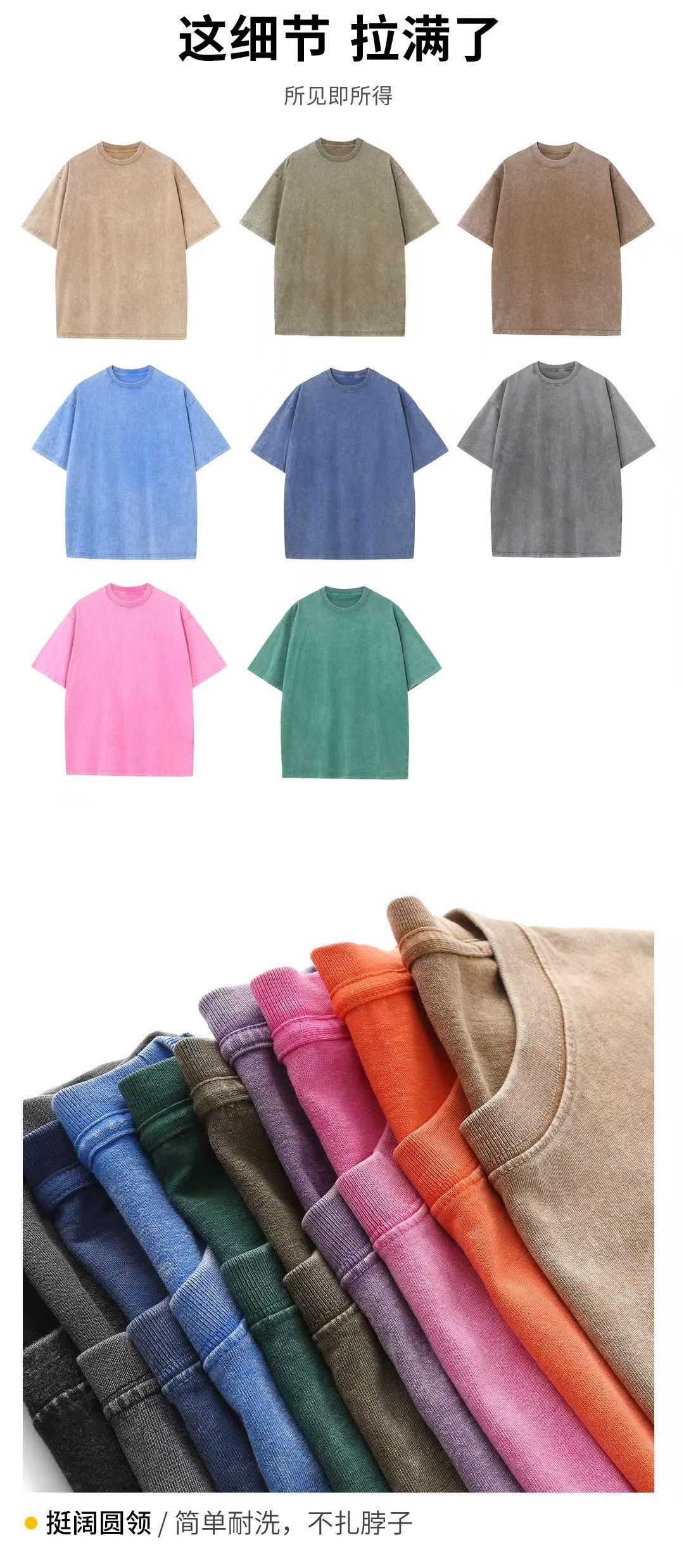 【产品性能】优质面料,亲肤舒适,吸湿排汗,让您全天保持凉爽、干燥。水洗做旧风格,复古时尚。经典圆领短袖,经久耐穿,日常穿脱不易变形,落肩设计,时尚感与舒适感兼备。无论是内搭还是外穿都很适合。